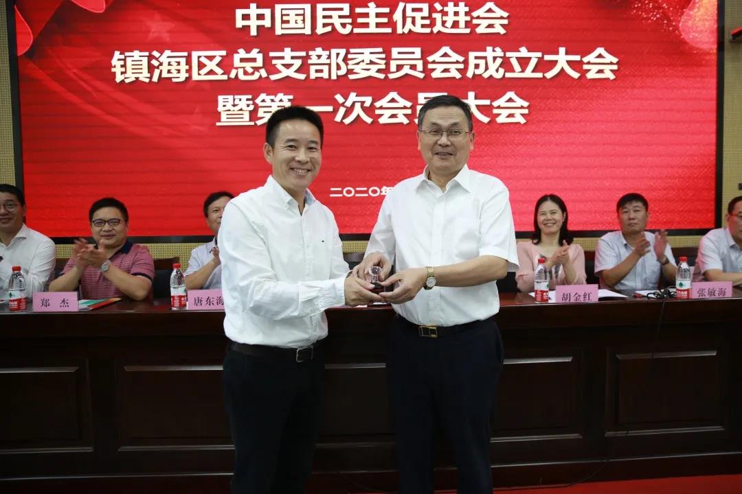 唐东海代表区委向新成立的民进镇海区总支部表示祝贺,希望总支部要继续强化理论武装,携手画好“同心圆”;继续发挥特色优势,奋力唱响“好声音”;继续加强组织建设,自觉提升“好形象”,为镇海加快建设高水平创新强区、争当浙江建设“重要窗口”模范生贡献智慧和力量。