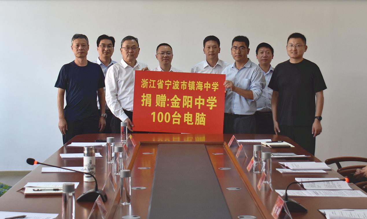 随后,吴国平一行与当地县委、县政府领导刘汉贵、杨克哈及县政府办、教体科局等相关单位负责人深入交流。座谈会上还举行了教学设备捐赠仪式,镇海中学向金阳中学捐赠了100台电脑。