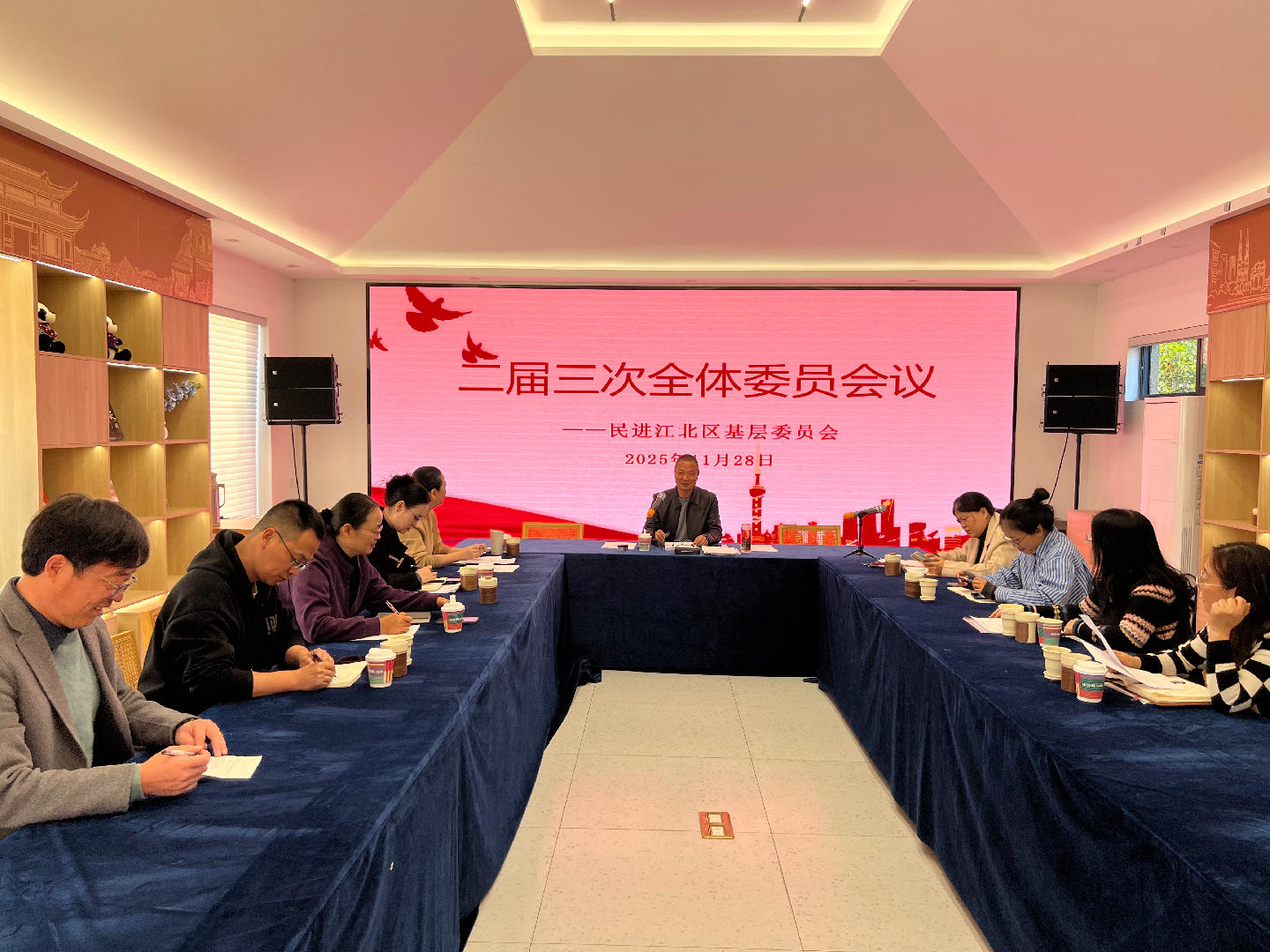 副主委蒋圆圆领学了中共二十届四中全会公报、习近平总书记近期重要讲话精神、《民进中央关于学习宣传贯彻中共二十届四中全会精神的通知》和蔡达峰主席讲话精神,并同步传达了省委、市委最新全会精神。随后,基层委委员、青工委成员以全会精神为指导,结合各自履职实践进行了交流发言。 朱建明指出,各支部要把学习贯彻全会精神作为当前和今后一个时期的重要政治任务,围绕“十五五”规划提前谋划基层组织履职重点,并在会史工作主题年中强化思想政治引领,充分发挥基层力量为会史整理添砖加瓦。 会议还审议通过了《中国民主促进会江北区基层委员会兼职机关建设工作制度》《江北民进支部组织规范化建设制度》,确定了基层委人大代表、政协委员联系支部名单及兼职机关各处室成员名单,听取并审议了各支部会史整理进展情况,对下一步支部规范化建设和会史资料补充完善作出具体部署