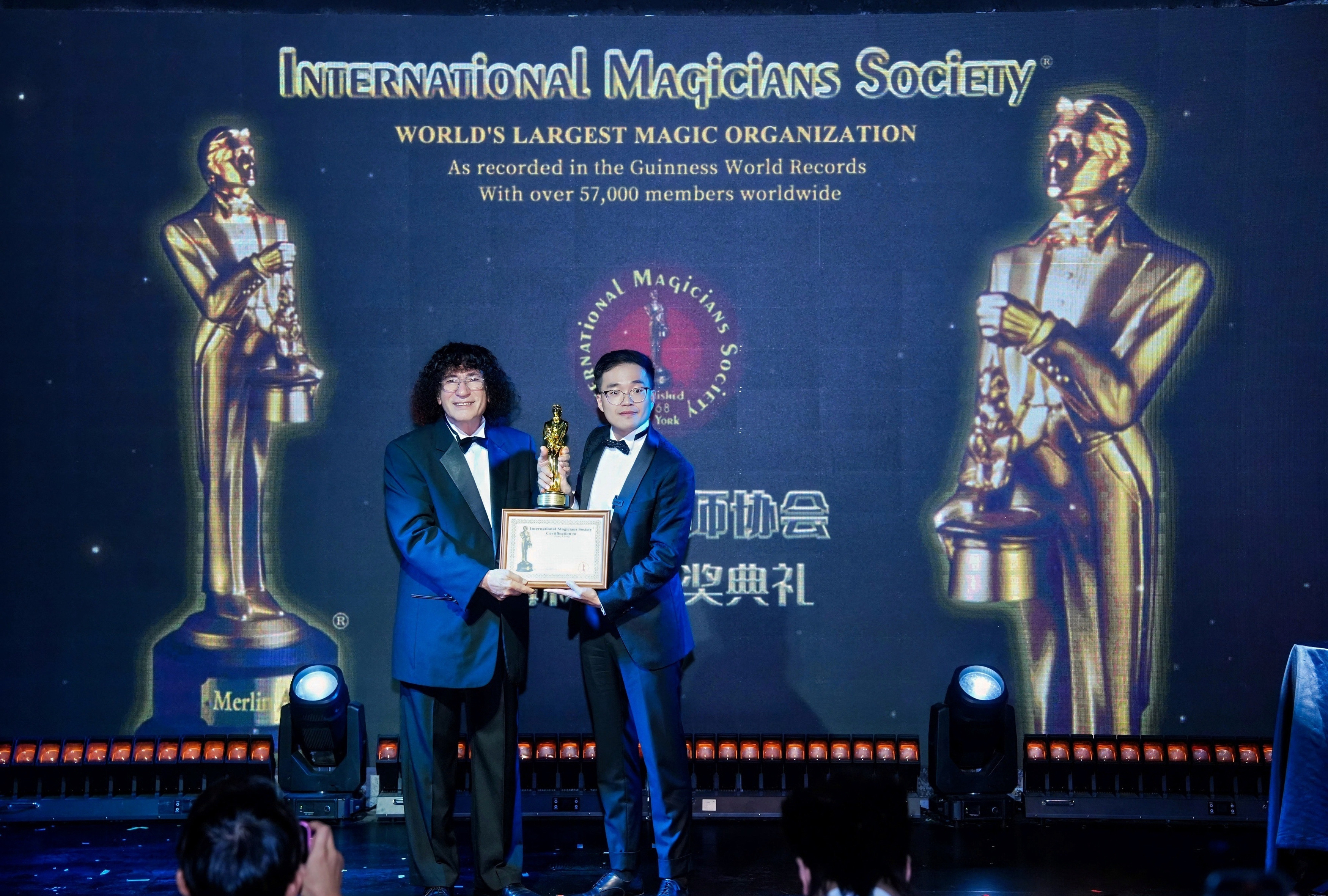 8月24日,站在国际魔术盛典的领奖台上,我会会员、魔术师董亮从84岁的国际魔术师协会主席托尼·哈悉尼(Tony Hassini)手中接过了一座沉甸甸的奖杯——2025年度梅林奖“最具影响力魔术师”。
