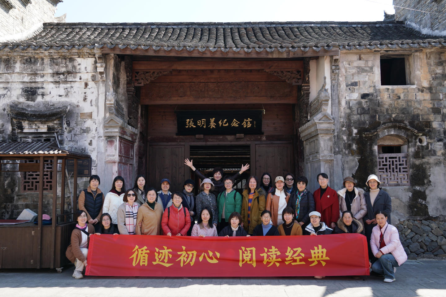 3月12日,民进宁波市委会妇女工作委员会赴宁海开展“循迹初心 阅读经典”主题走读活动,妇委会主任何丽波及40余名女会员参加活动。
